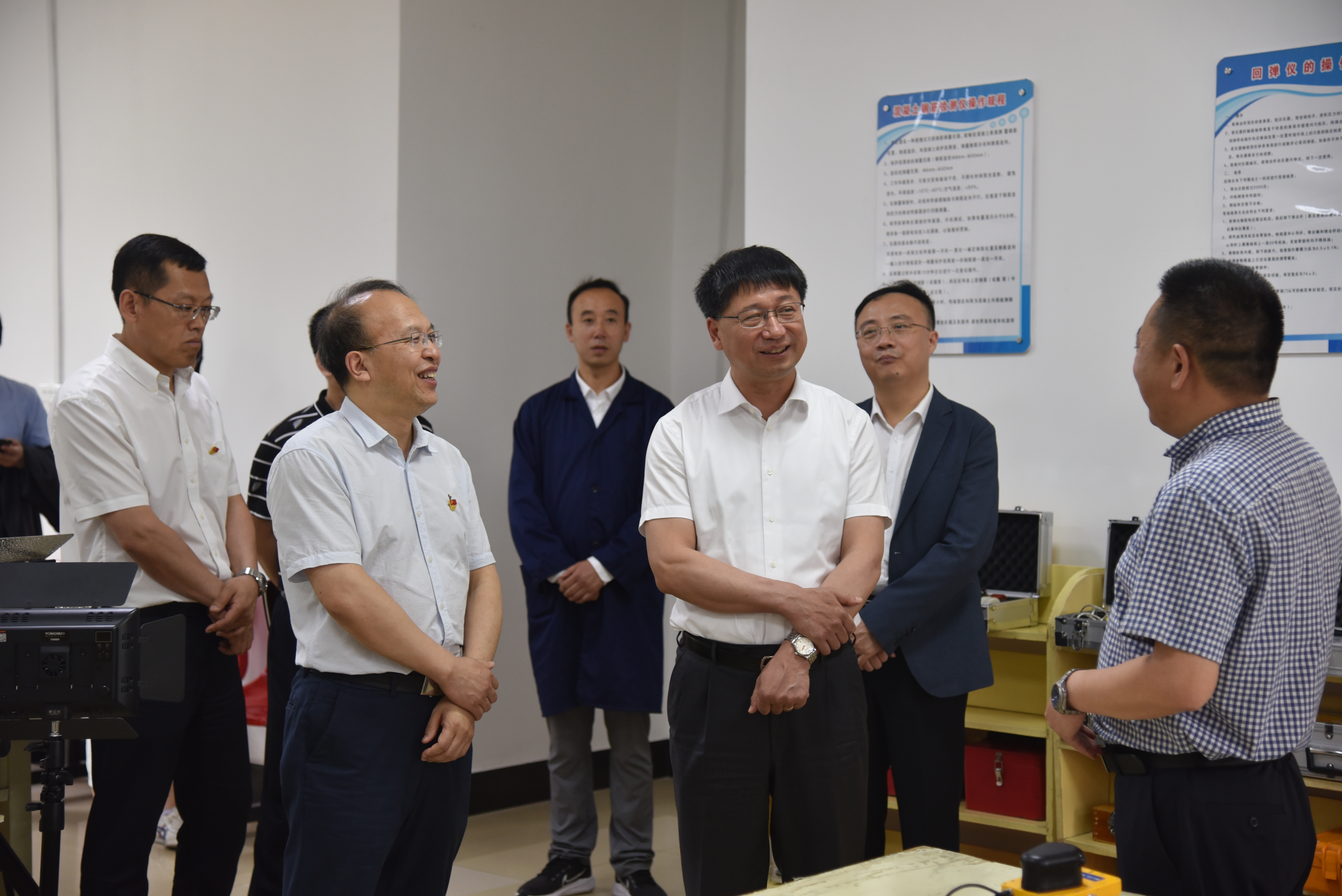 张希董事长首先来到道桥实验室实地考察,详细了解设备使用运行情况,听取了公司本科教学实践方面的汇报。座谈会上,李世武经理从公司总体情况、“十四五”规划工作重点和主要困难及解决思路三个方面做了汇报。公司党委书记李善兴就党建工作和党史学习教育开展情况做了汇报。