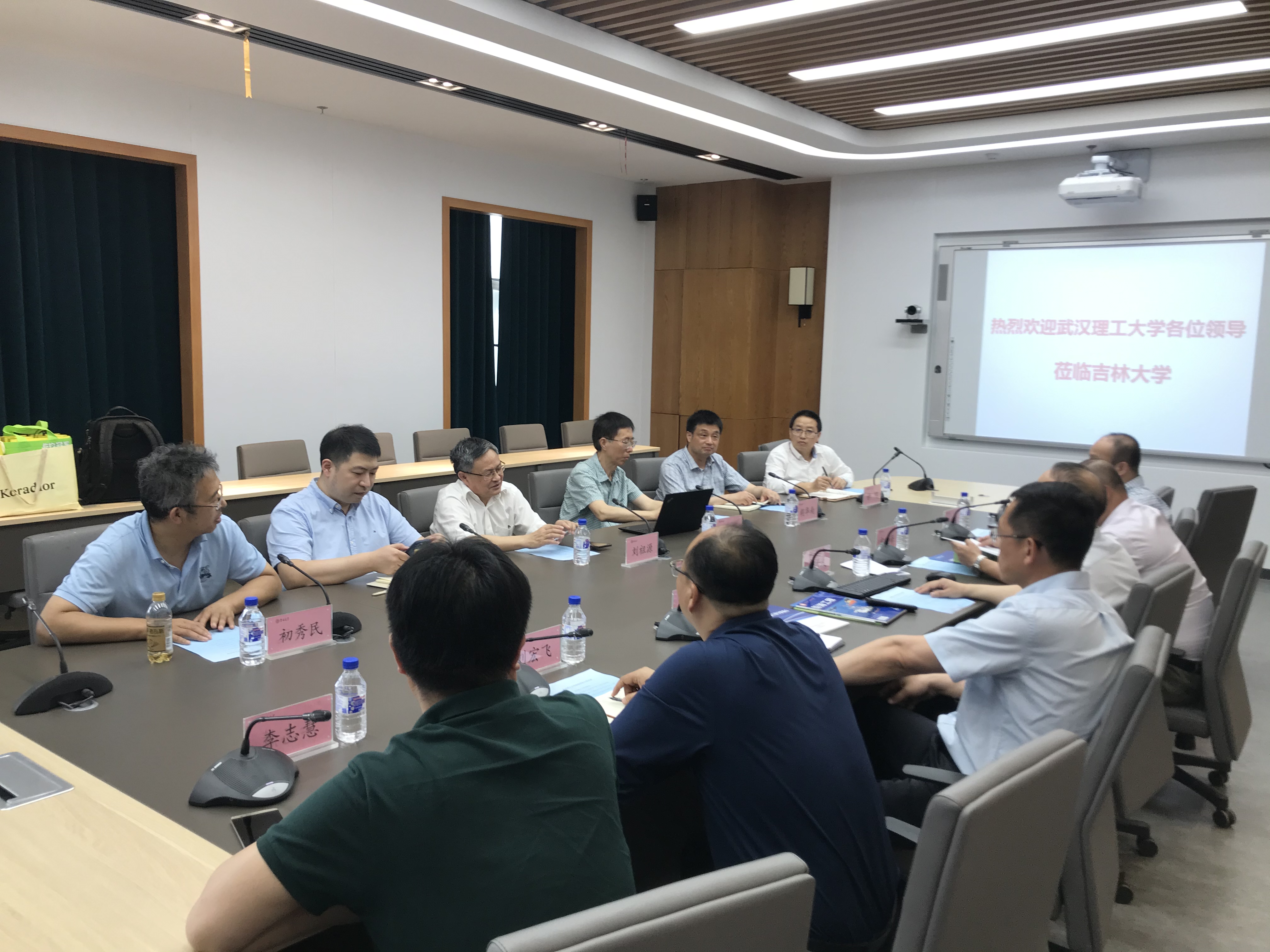 会前,副董事长王玉柱代表yl23455永利会见了武汉理工大学副董事长刘祖源一行。双方就两校发展历史、学科发展现状和未来交流合作等方面进行了亲切、友好的交流。