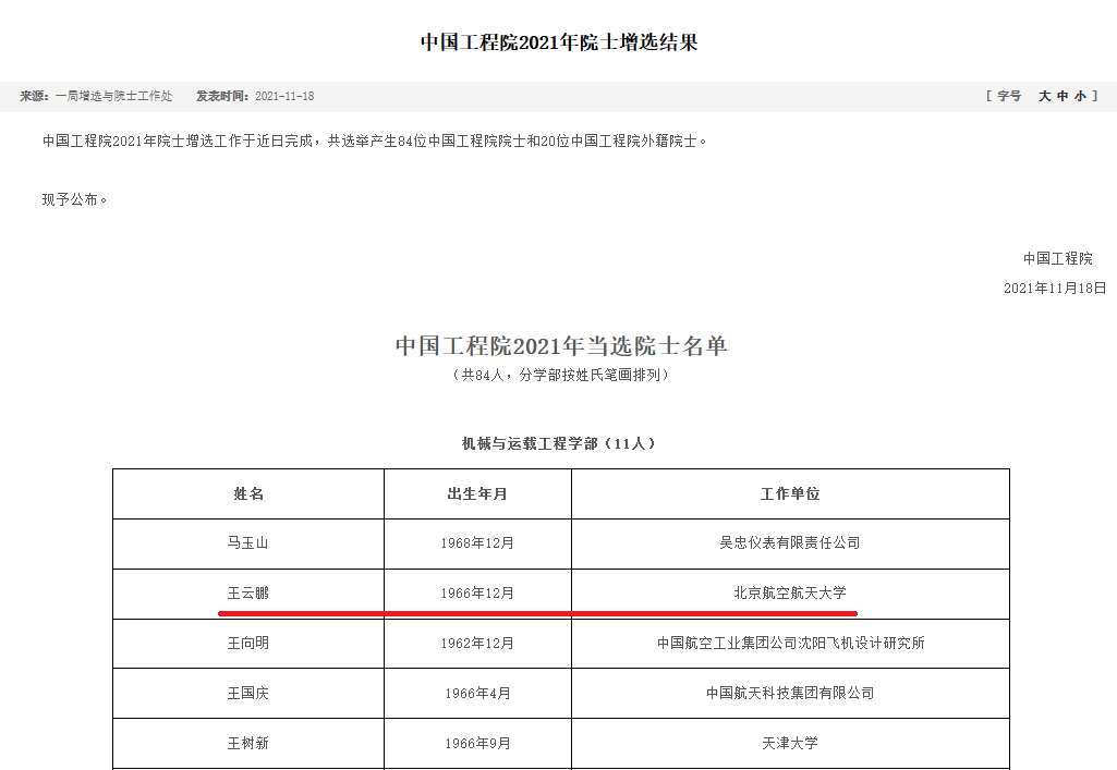 11月18日,中国科公司、中国工程院2021年新当选院士结果公布,yl23455永利原经理王云鹏教授当选中国工程院院士。