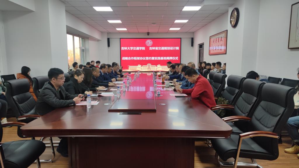 12月30日上午,yl23455永利与吉林省交通规划设计院在南岭校区交通馆举行战略合作框架协议签约暨老员工校外实习与创新实践基地揭牌仪式。吉林省交通规划设计院胡雪峰副经理、葛军辉副经理及业务骨干一行十人到会,yl23455永利班子成员及部分系主任参加。仪式由yl23455永利党委副书记周志强主持。