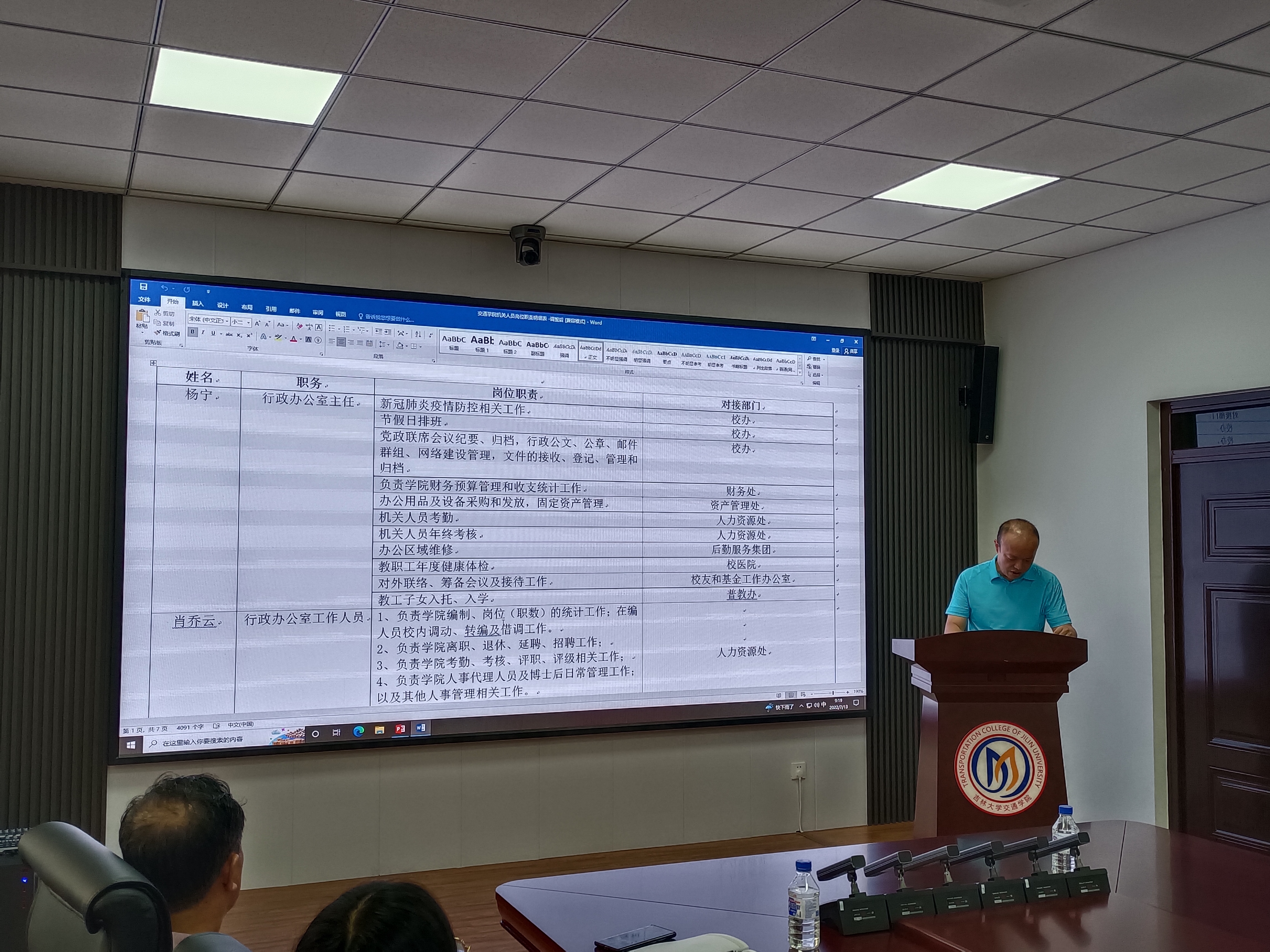 根据工作需要,公司党政联席会研究决定,对公司机关人员岗位职责进行了调整。会上,行政副经理吕昆公布了公司机关人员岗位职责调整情况和办公室调整方案,并要求公司机关人员以崭新的精神风貌和积极的工作作风迎接新学期的各项工作。