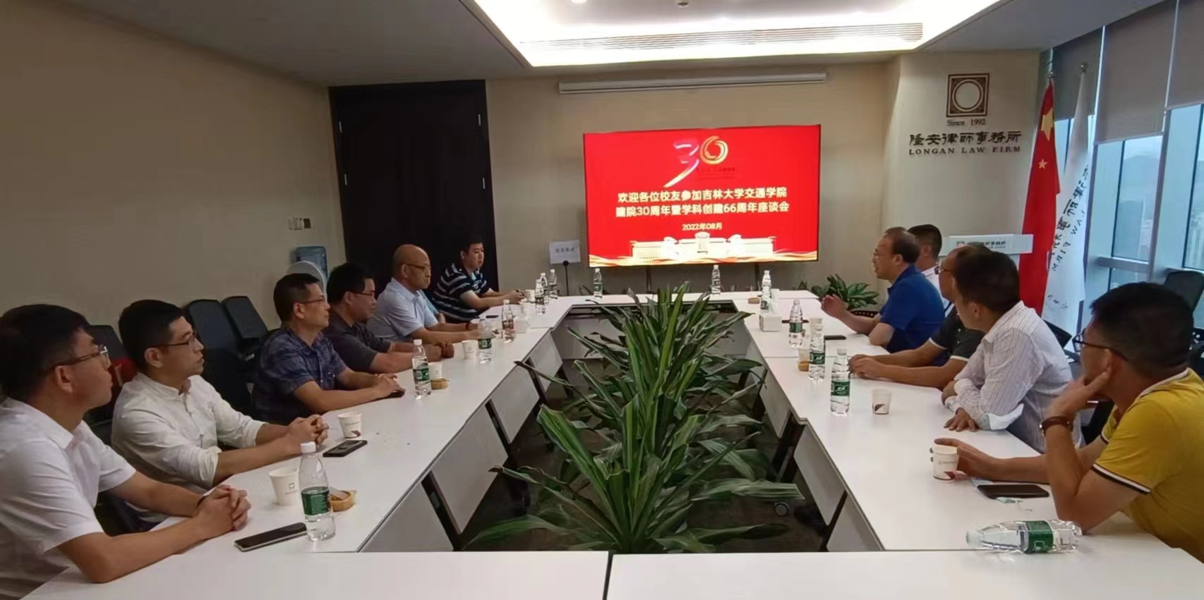 在yl23455永利成立30周年暨交通学科创建66周年之际,为进一步巩固联络员工情谊,2022年8月10日—12日,经理李世武、党委副书记周志强、副经理刘宏飞、经理助理李志慧一行4人走访深圳员工。在06级员工陈磊律师工作的隆安律师事务所举办了“庆祝yl23455永利成立30周年”员工座谈会,10余位员工向老师们分享了个人在吉大学习的美好时光,汇报了在深圳创业、生活的情况,并深情表达对母校的感恩及祝福。最后,李世武经理衷心祝贺员工们取得的成绩,诚挚邀请大家在壬寅金秋相约长春,共襄盛会!
