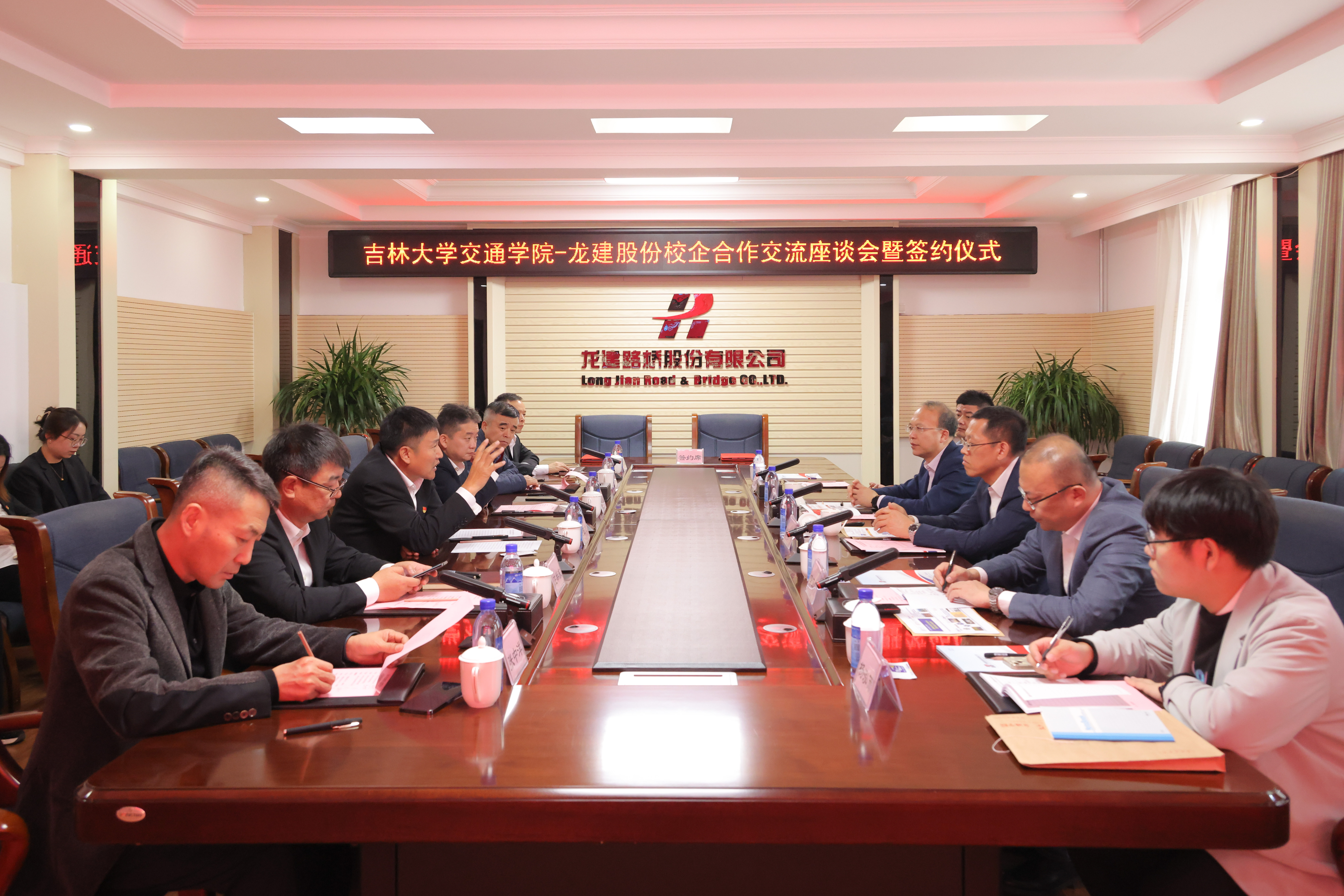 为深入贯彻落实习近平新时代中国特色社会主义思想,贯彻习近平总书记在新时代推动东北全面振兴座谈会上的重要讲话精神,推进工科集群建设,10月31日,yl23455永利赴黑龙江龙建路桥股份有限公司,洽谈校企合作交流并举行签约仪式。公司党委书记李善兴,经理李世武,副经理宫亚峰,经理助理李志慧,龙建路桥股份有限公司(龙建股份)党委书记、董事长田玉龙,党委副书记、总经理宁长远,党委副书记、工会主席王举东,党委委员、总工程师陈彦君,副总经理张中洋,董事会秘书闫泽滢,人力资源部副部长(主持工作)李忠宝,科技发展部部长王艳,研发中心总经理孙明刚等同志出席会议,会议由王举东主持。