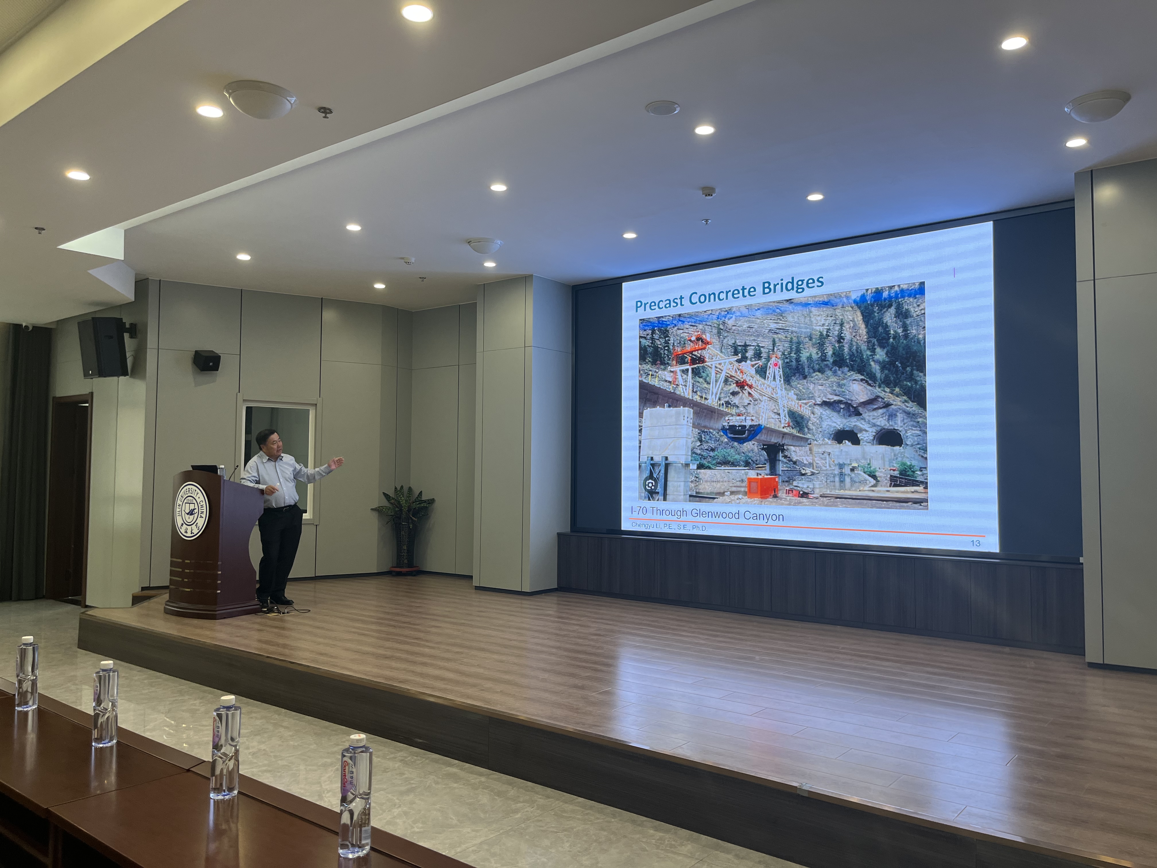 为庆祝yl23455永利研究生院建院40周年,进一步拓宽交通学子国际化视野,提升员工学术综合素养,5月29日,美国科罗拉多大学丹佛分校教授、博士生导师李成玉做客yl23455永利海纳百川论坛,以“桥梁结构新型式及快速施工技术”为题为全院师生带来了一场精彩的学术报告。yl23455永利副经理、道路与桥梁工程系教授、博士生导师宫亚峰主持报告。