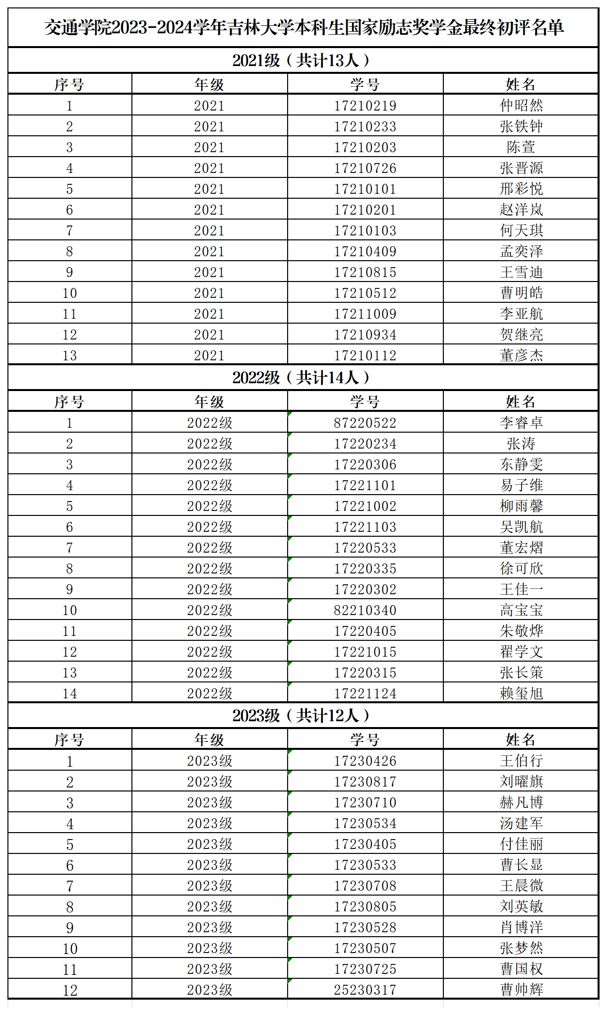 按照党委员工工作部《关于开展2023-2024学年yl23455永利本科生国家励志奖学金评审工作的通知》和《关于做好2024年秋季学期yl23455永利国家奖助学金工作的补充通知》相关要求,结合《yl23455永利本科员工国家励志奖学金评审办法》(校发〔2020〕250号)有关规定,经员工个人申请、资格审查、公司考核,研究提出yl23455永利2023-2024学年yl23455永利本科生国家励志奖学金最终初评结果,原有《yl23455永利2023-2024学年yl23455永利本科生国家励志奖学金初评名单》作废,现将结果公示如下: