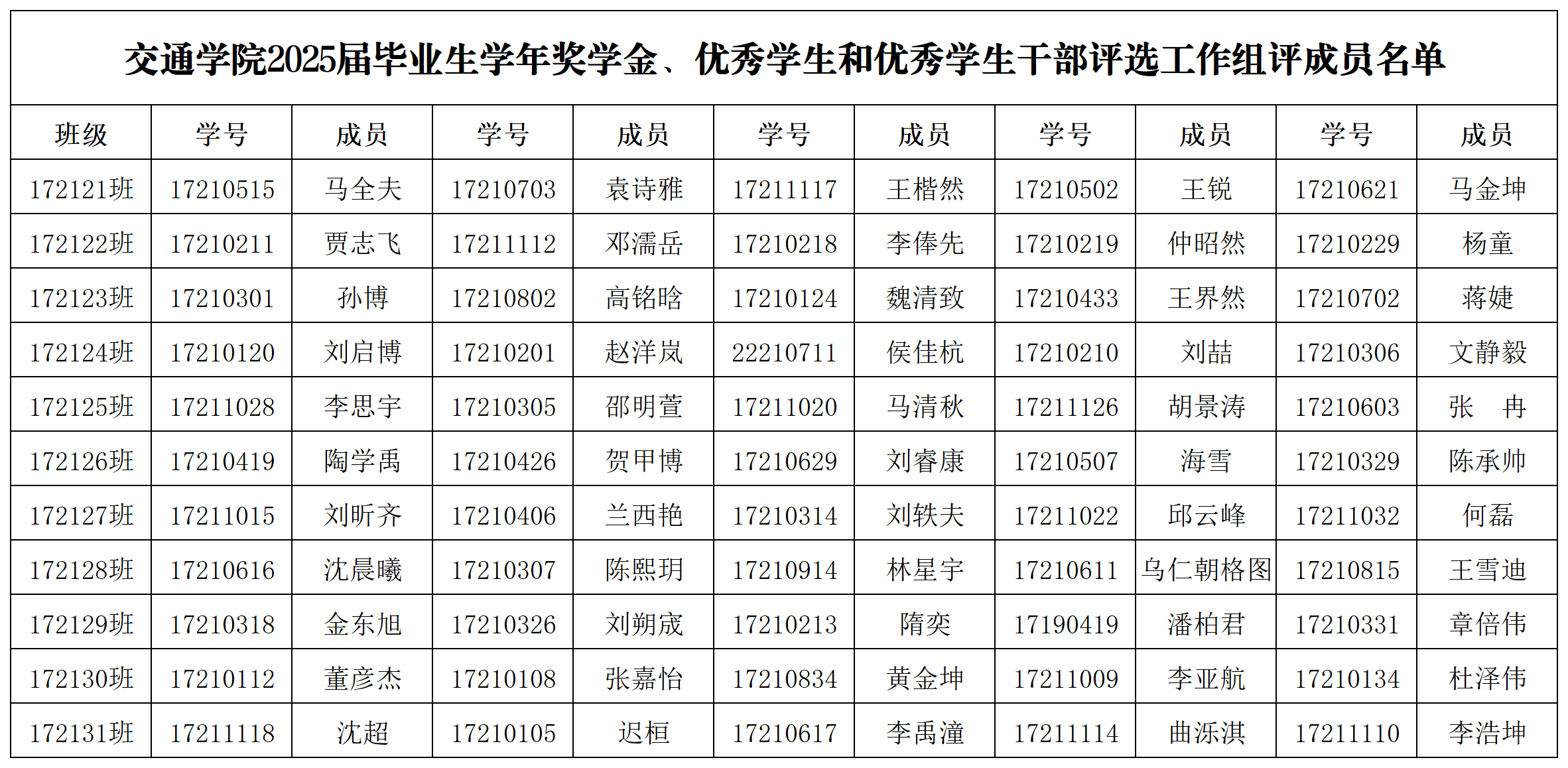 根据党委员工工作部《关于开展2025届毕业生学年奖学金、优秀员工和优秀员工干部评选工作的通知》相关要求,yl23455永利按照班级为单位成立组评小组(小组成员一般由员工党员、员工干部、员工代表组成,总人数不少于5人,其中设组长1人)。现将2025届毕业生学年奖学金、优秀员工和优秀员工干部评选工作组评小组成员名单公布如下(各组评小组首位为组长)。